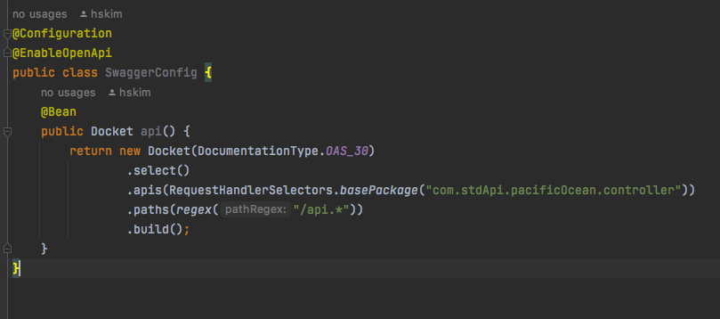베이스패키지에는 api를 문서화할 컨트롤러가 들어가 주면 됩니다.
