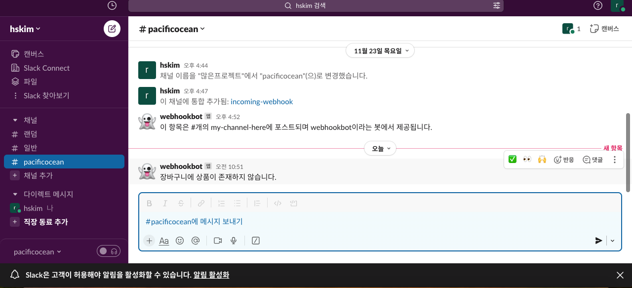 슬랙에 알림이 왔습니다!!