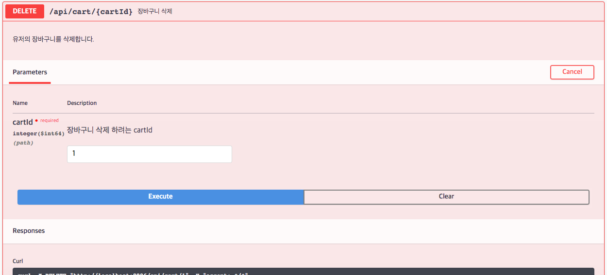 이제 test로 로컬에서 장바구니 api를 조작해보겠습니다.