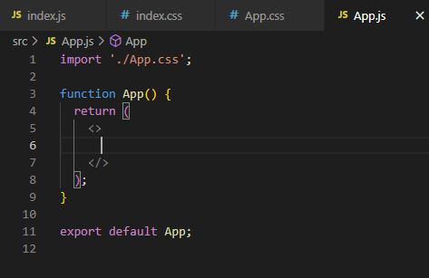 또한 스타일에 관련된 index.css app.css 안에 코드들도 지워줍니다.