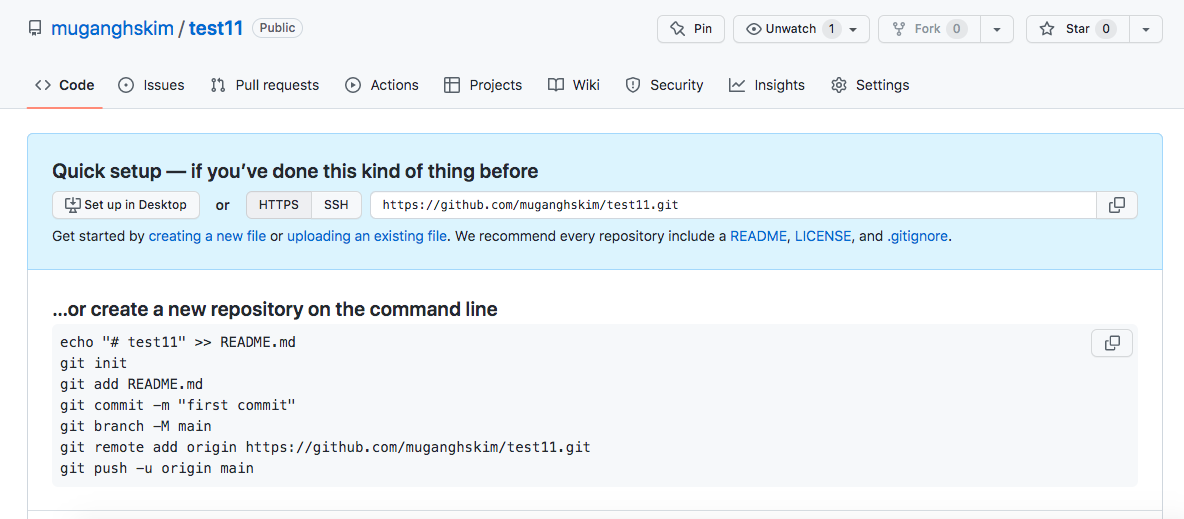 4). git remote add origin https://github.com/muganghskim/test11.git
