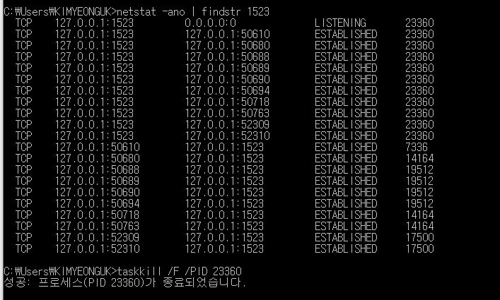 오라클과 postgres를 kill 해보고 다시 시작하는 실험을 해보겠습니다.